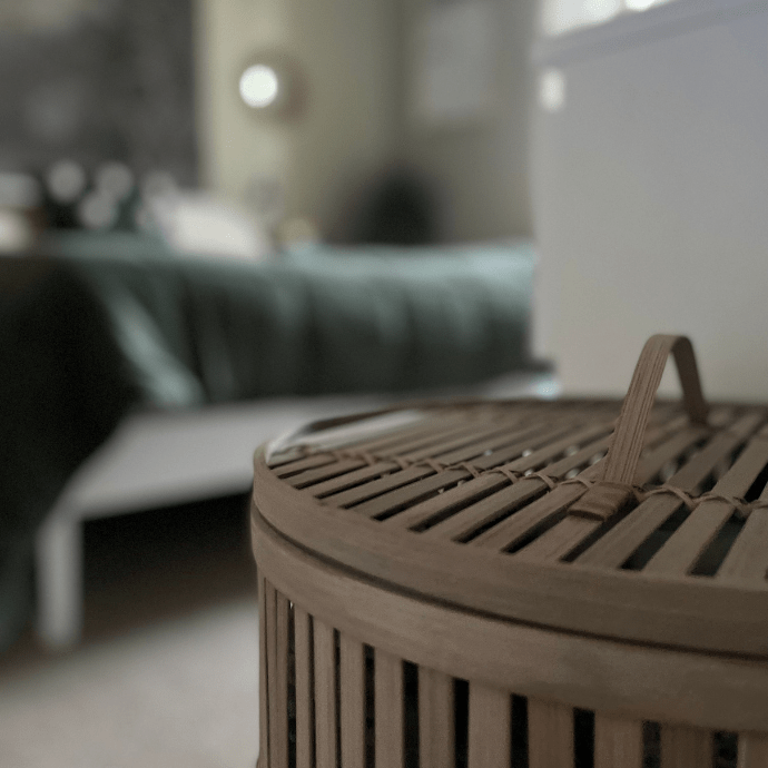As I said earlier, my bedroom was screaming out for the addition of some wood. The addition of wooden bedside tables and a wood and rattan chest of drawers worked a treat. I also got these bamboo washing baskets – I love their clean lines next to the boucle.